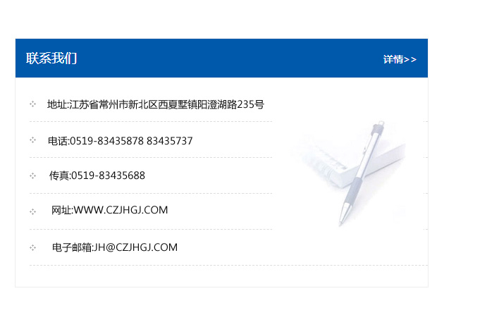 傳真:0519-83435688    郵編:213135    網址:WWW.czjhgj_com.jiushunkeji.com    電子郵箱:JH@czjhgj_com.jiushunkeji.com
